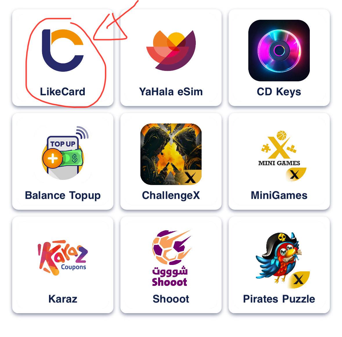 ♦️ 2- بعد ما تحمل التطبيق راح تجيك هذي الصفحه اضغط على " LikeCard "